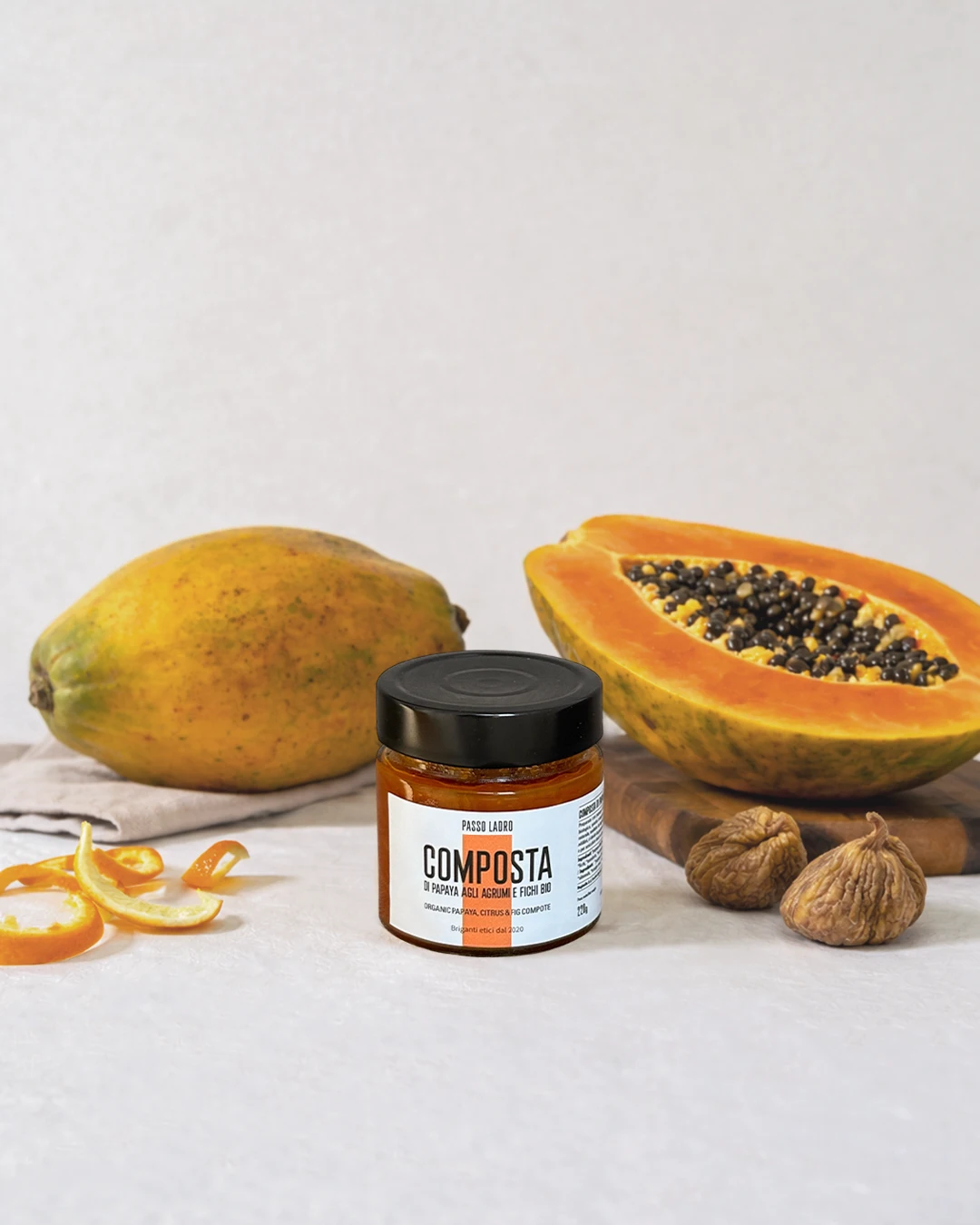 Preparata con papaya biologica coltivata in Sicilia, questa composta racchiude un’altissima percentuale di frutta: un cucchiaio richiama il gusto della papaya fresca sotto il sole del Mediterraneo. La dolcezza naturale della papaya si apre su fresche note agrumate e si completa con le sfumature più profonde dei fichi, dando vita a un equilibrio autentico e sorprendente, senza conservanti, additivi o aromi artificiali.